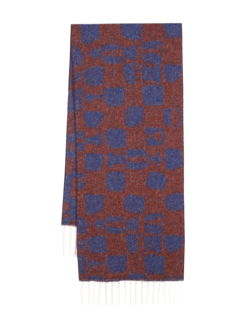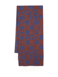 chess pieces-jacquard wool scarf Highlights - Royal blue/rust red - Wool - Brushed finish - Chess pieces motifs - Patterned jacquard - Rectangle shape - Fringed edge - Wraparound style Made in Italy Composition Wool 100% SIZE & FIT Measurement LENGTH 86.61 in(220 cm) WIDTH 19.68 in(50 cm)