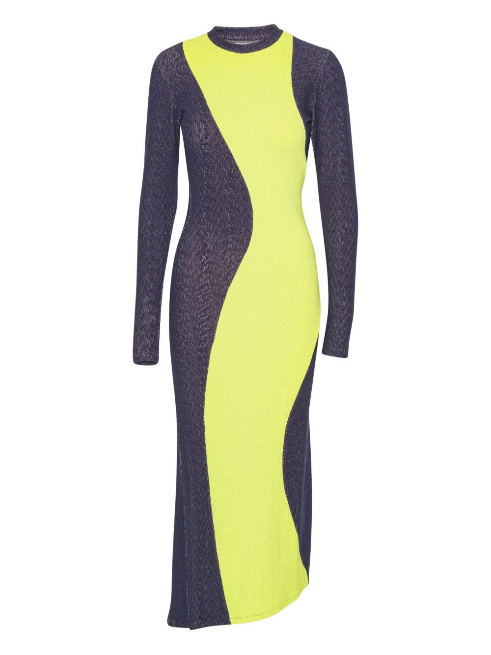 colour-block midi dress Highlights - Chartreuse yellow and dark grey - Asymmetrical hem - Long sleeves - Round neck - Textured knit Imported Composition Fabric 100% Washing instructions Read Manufacturer Guidelines