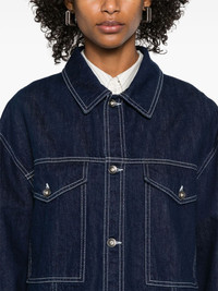 Dusk denim jacket Highlights - Navy blue - Front button fastening - Two button-fastening chest pockets - Buttoned-cuff sleeves - Contrast stitching Imported Composition Organic Cotton 100% SIZE & FIT Model measurements Height 5 ft 11 in(1.8 m) Bust/Chest 31.49 in(80 cm) Hips 35.82 in(91 cm) Waist 24.8 in(63 cm) FittingInformation Designed to be unstructured, offering a loose fit throughout Sturdy and hard-wearing, this denim piece offers no stretch