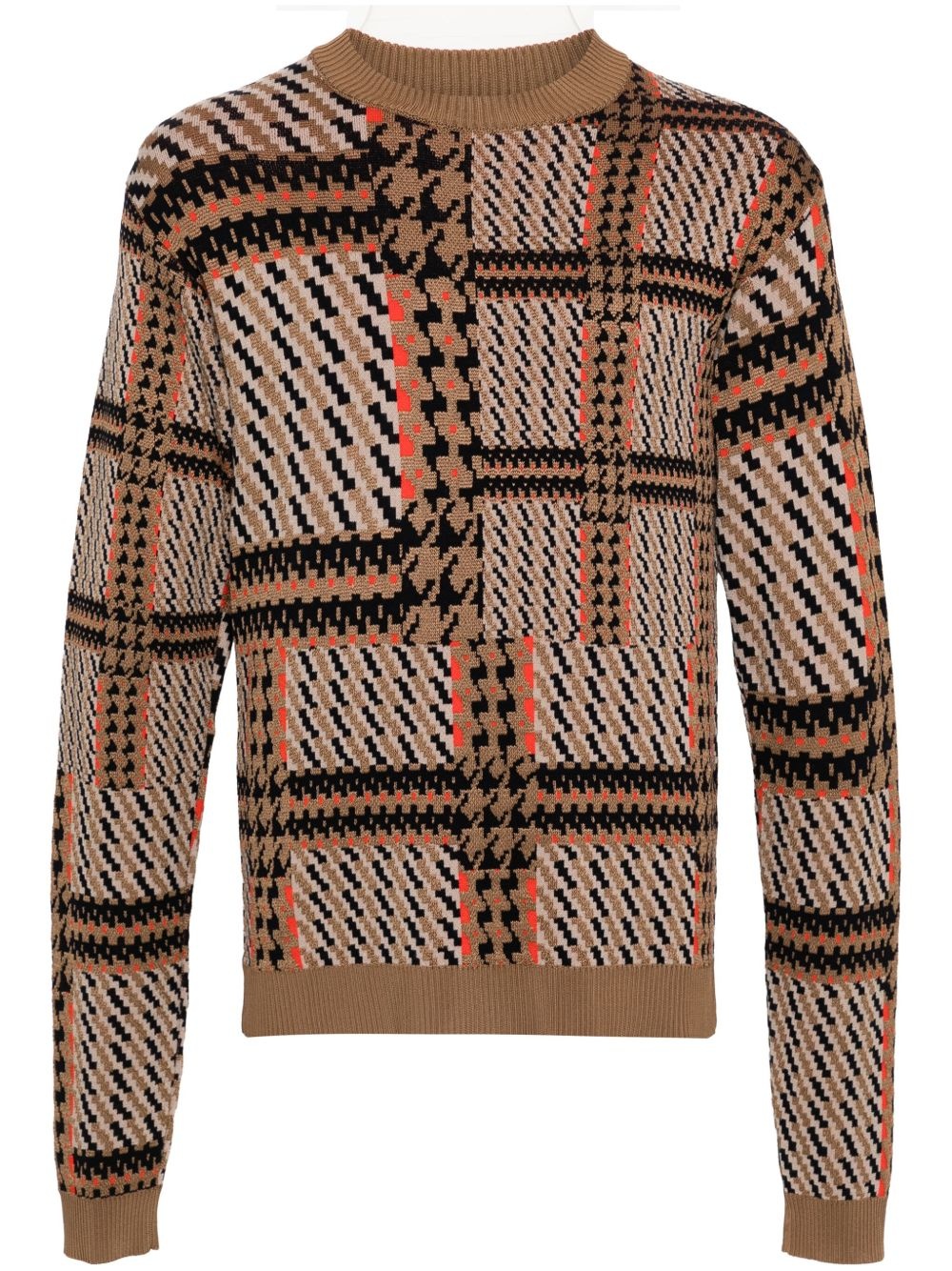Dusk sweater Highlights - Brown/multicolour - Knitted construction - Mix check pattern - Crew neck - Long sleeves - Ribbed cuffs and hem - Straight hem Imported Composition Viscose 80%, Polyamide 20% SIZE & FIT Model measurements Height 6 ft 2 in(1.89 m) Bust/Chest 37.4 in(95 cm) Hips 37.4 in(95 cm) Waist 29.52 in(75 cm) FittingInformation Designed for a slim fit, offering a comfortable fit that sits just away from the body The ribbed hem offers a close, comfortable fit Made with a midweight knit, this piece offers some stretch This piece fits true to size – take your usual size