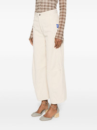 Dusk trousers Highlights - Ecru - Concealed fly and button fastening - Two side welt pockets - Two rear patch pockets - Embroidered design Imported Composition Organic Cotton 100% SIZE & FIT Model measurements Height 5 ft 11 in(1.8 m) Bust/Chest 31.49 in(80 cm) Hips 35.82 in(91 cm) Waist 24.8 in(63 cm) FittingInformation Designed with a wide-leg cut, these trousers allow for a close fit at the waist and offer a loose and roomy fit over the leg Made from a midweight non-stretch fabric