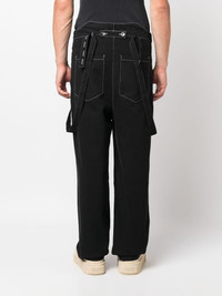 Early contrasting-stitch trousers Highlights - Black - Cotton - Straight-leg - Silver-tone hardware - Contrast stitching - Detachable shoulder straps - Front button and zip fastening - Two side inset pockets - Two rear patch pockets Imported Composition Cotton 100% SIZE & FIT Model measurements Height 6 ft 2 in(1.89 m) Bust/Chest 38.97 in(99 cm) Hips 38.18 in(97 cm) Waist 32.28 in(82 cm) FittingInformation Designed for a straight-leg, allowing for an unrestricted and comfortable fit over the leg Sturdy and hard-wearing, this denim piece offers no stretch This piece fits true to size – take your usual size