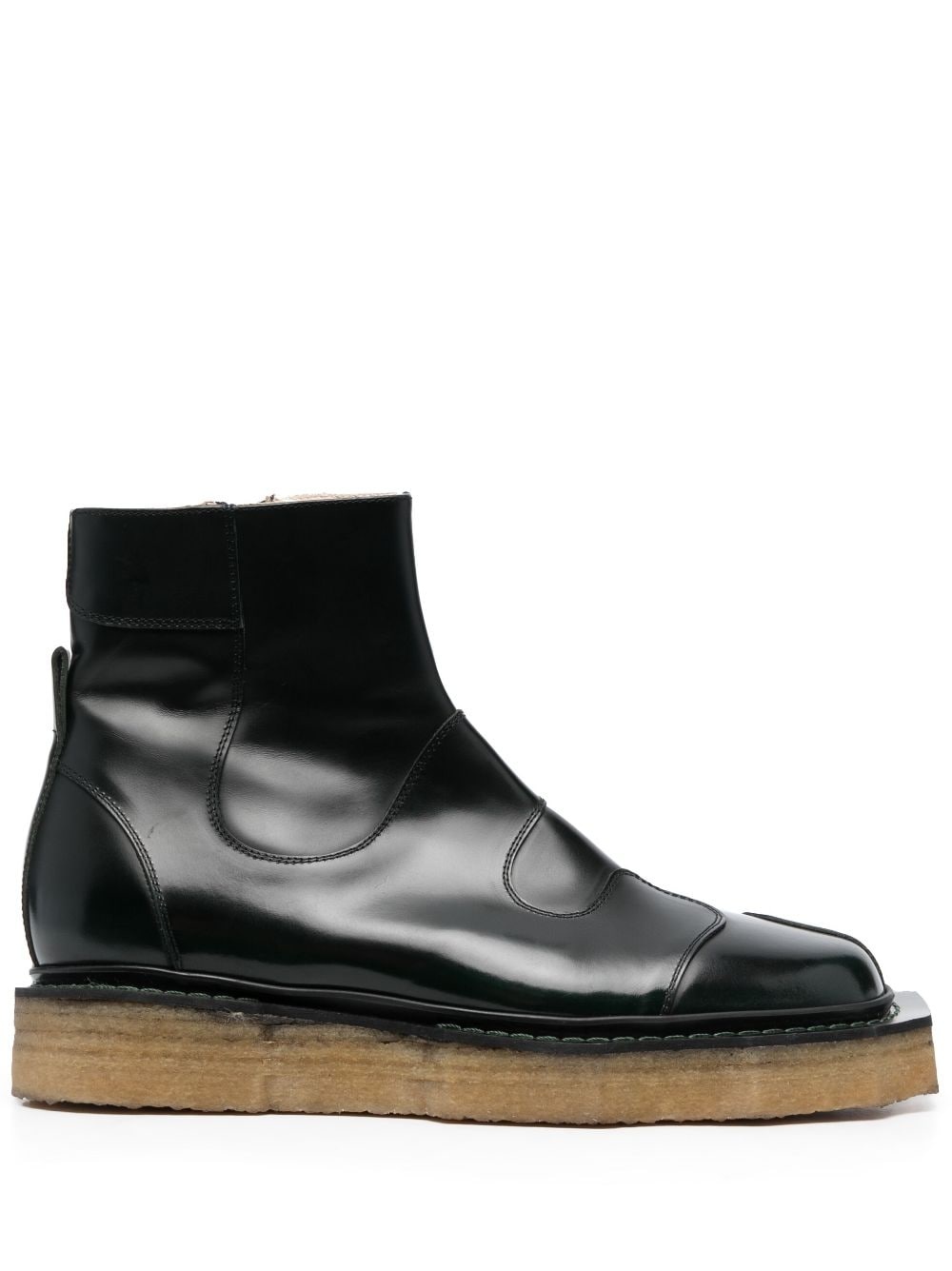 Enzo driver ankle boots Highlights - Dark green - Calf leather - High-shine finish - Side zip fastening - Asymmetric toe - Branded insole - Flat rubber sole Imported Composition Leather 100% SIZE & FIT Measurement CIRCUMFERENCE 8.66 in(22 cm) HEEL 1.57 in(4 cm) HEIGHT 5.51 in(14 cm) Sole height 1.18 in(3 cm)