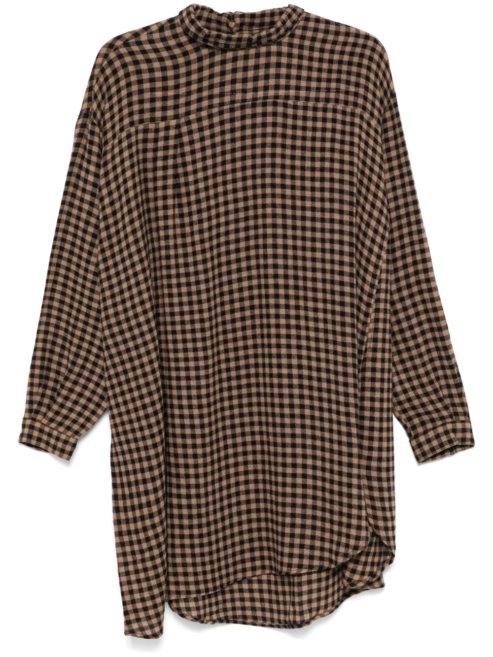 Flip shirt Highlights - Beige/black - Interlock weave - Gingham check pattern - Rear button fastening - High neck - Box-pleat detail to the front and rear - Drop shoulder - Long sleeves with buttoned cuffs - Curved hem - Thigh-length Imported Composition EcoVero Viscose (LENZING) 70%, Wool 30%