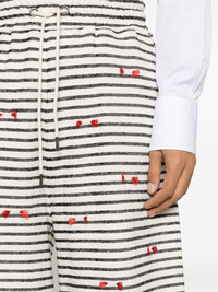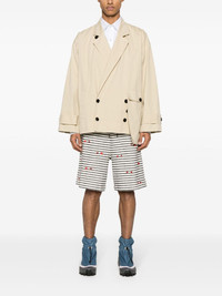 Fringy striped shorts Highlights - White/black - Organic cotton - Fringe detailing - Horizontal stripe pattern - Elasticated drawstring waistband - Two side slit pockets - Straight hem - Above-knee length Imported Composition Organic Cotton 100% SIZE & FIT Model measurements Height 6 ft 2 in(1.87 m) Bust/Chest 38.18 in(97 cm) Hips 36.61 in(93 cm) Waist 29.13 in(74 cm) FittingInformation Designed for relaxed fit, offering a comfortable loose fit over the leg Adjust this piece’s waistband to your preference using the drawstring Made from a midweight non-stretch fabric, this piece offers minimal elasticity when worn This piece fits true to size – take your usual size