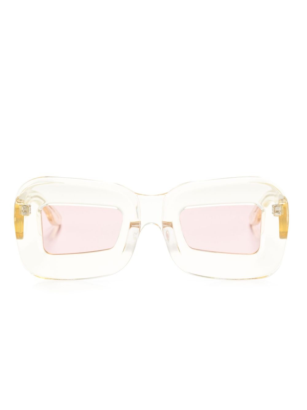 Maria sunglasses Highlights - Light yellow - Acetate - Transparent design - Oversize frame - Pink tinted lenses - Oversize arms with curved tips - These glasses come with a protective case. Imported Composition Acetate 100% SIZE & FIT Measurement Arm Length 5.7 in(14.5 cm) Bridge Width 1.14 in(2.9 cm) Lens Diameter 1.81 in(4.6 cm) Total Width 5.7 in(14.5 cm)