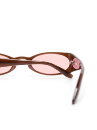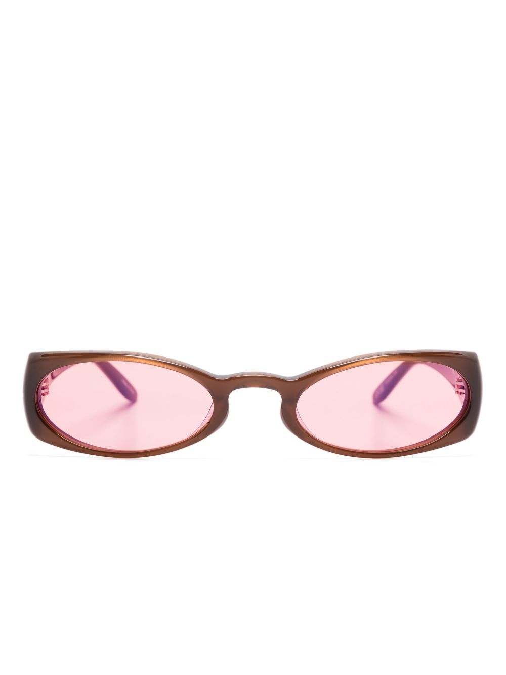 Megan sunglasses Highlights - Chocolate brown - Sculpted arms - Curved tips - Pink tinted lenses - These glasses come with a protective case. Imported Composition Acetate 100% SIZE & FIT Measurement Arm Length 5.51 in(14 cm) Bridge Width 0.9 in(2.3 cm) Lens Diameter 2.16 in(5.5 cm)
