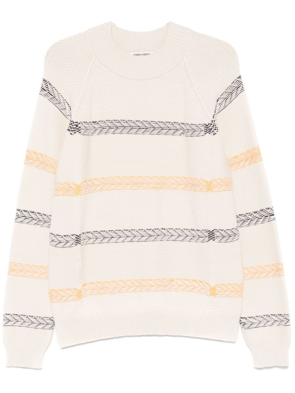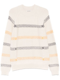 New Stitch sweater Highlights - Beige/midnight blue/sunset yellow - Ribbed knit - Purl knit - Crew neck - Long raglan sleeves - Horizontal stripe pattern - Straight hem Imported Composition Cotton 74%, Polyamide 26%