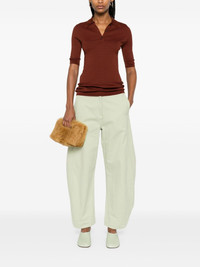 Post jeans Highlights - Light green - Concealed fly and button fastening - Belt loops - Two side slit pockets - Two rear patch pockets Imported Composition Organic Cotton 98%, Spandex/Elastane 2% SIZE & FIT Model measurements Height 5 ft 11 in(1.8 m) Bust/Chest 31.49 in(80 cm) Hips 35.82 in(91 cm) Waist 24.8 in(63 cm) FittingInformation Designed with a wide-leg cut, these trousers allow for a close fit at the waist and offer a loose and roomy fit over the leg The adjustable tabs allow for fitted preferences Made from a midweight stretch fabric, this piece offers elasticity and flexibility when worn