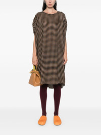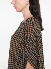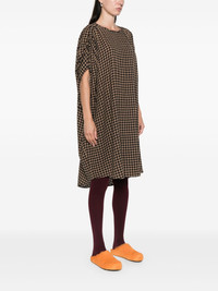 Renew midi dress Highlights - Black/brown - Textured finish - Gingham check pattern - Round neck - Short sleeves - Straight hem - Mid-length Imported Composition EcoVero Viscose (LENZING) 70%, Wool 30% SIZE & FIT Model measurements Height 5 ft 10 in(1.78 m) Bust/Chest 33.46 in(85 cm) Hips 36.22 in(92 cm) Waist 23.22 in(59 cm) FittingInformation Designed to be unstructured, offering a loose fit throughout