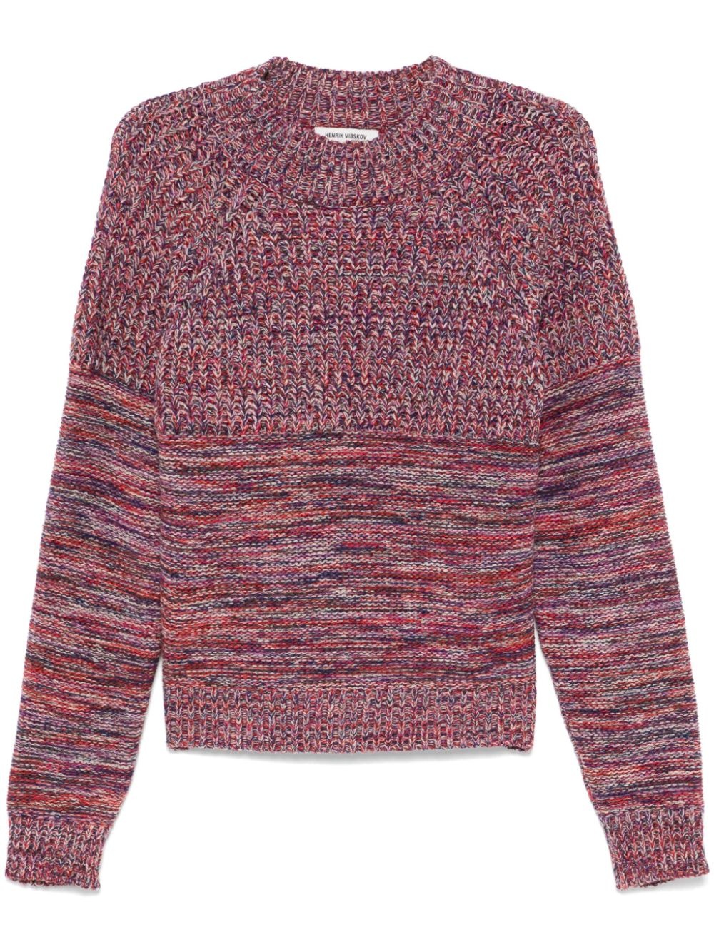 Six End sweater Highlights - Navy blue/multicolour - Knitted construction - Purl knit panelling - Crew neck - Long raglan sleeves - Ribbed cuffs and hem - Straight hem Imported Composition Wool 100%