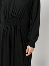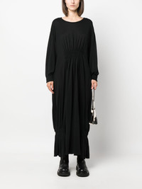 smocked-panel detail midi dress Highlights - Black - Cotton - Smocked panel - Elasticated cuffs - Round neck - Long sleeves - Mid-length Imported Composition Cotton 100% SIZE & FIT Model measurements Height 5 ft 10 in(1.77 m) Bust/Chest 35.03 in(89 cm) Hips 35.03 in(89 cm) Waist 23.62 in(60 cm) FittingInformation Designed to be unstructured, offering a loose fit throughout Made from a midweight non-stretch fabric, this piece offers minimal elasticity when worn This piece fits true to size – take your usual size
