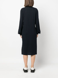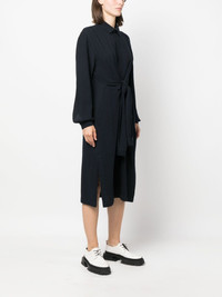 spread-collar shirtdress Highlights - Navy blue - Organic cotton - Spread collar - Front button fastening - Belted waist - Long sleeves - Below-knee length - Straight hem Imported Composition Organic Cotton 100% SIZE & FIT Model measurements Height 5 ft 10 in(1.77 m) Bust/Chest 35.03 in(89 cm) Hips 35.03 in(89 cm) Waist 23.62 in(60 cm)