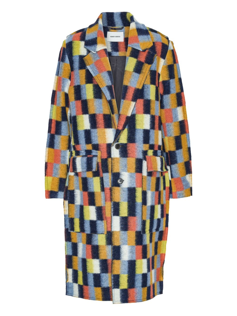 square-motif single-breasted coat