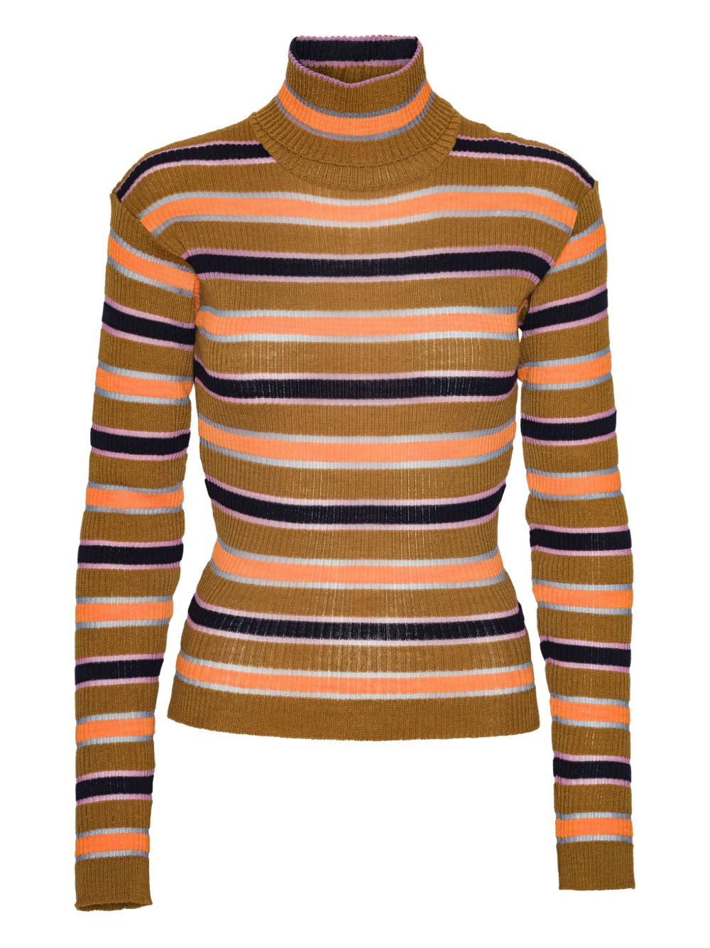 striped roll-neck top Highlights - Orange - Striped pattern - Roll neck - Long sleeves - Ribbed knit Imported Composition Fabric 100% Washing instructions Read Manufacturer Guidelines