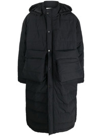 Tabasco padded hooded coat Highlights - Black - Padded design - Classic hood - Front press-stud fastening - Long sleeves - Two front flap pockets - Mid-length Imported Composition Polyester 100% SIZE & FIT Model measurements Height 6 ft 2 in(1.89 m) Bust/Chest 38.97 in(99 cm) Hips 38.18 in(97 cm) Waist 32.28 in(82 cm) FittingInformation Designed to be unstructured, offering a loose fit throughout Made from a padded non-stretch fabric, giving it no natural elasticity This piece fits true to size – take your usual size