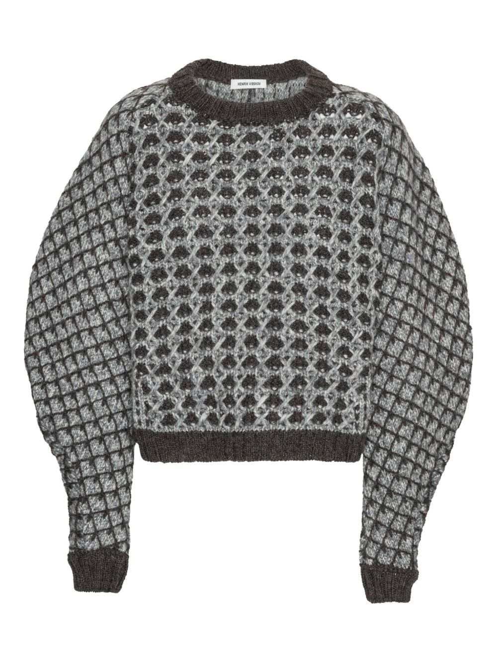 textured long-sleeve sweater Highlights - Brown - Geometric pattern - Long sleeves - Ribbed cuffs - Crew neck Imported Composition Fabric 100% Washing instructions Read Manufacturer Guidelines