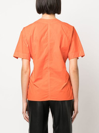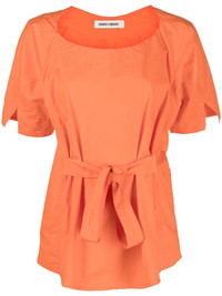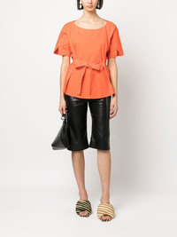 tied-waist short-sleeved blouse pumpkin orange tied waist round neck short sleeves straight hem Imported Composition Organic Cotton 97%, Elastane 3% SIZE & FIT Model measurements Height 5 ft 11 in(1.8 m) Bust/Chest 31.49 in(80 cm) Hips 35.43 in(90 cm) Waist 24.4 in(62 cm)