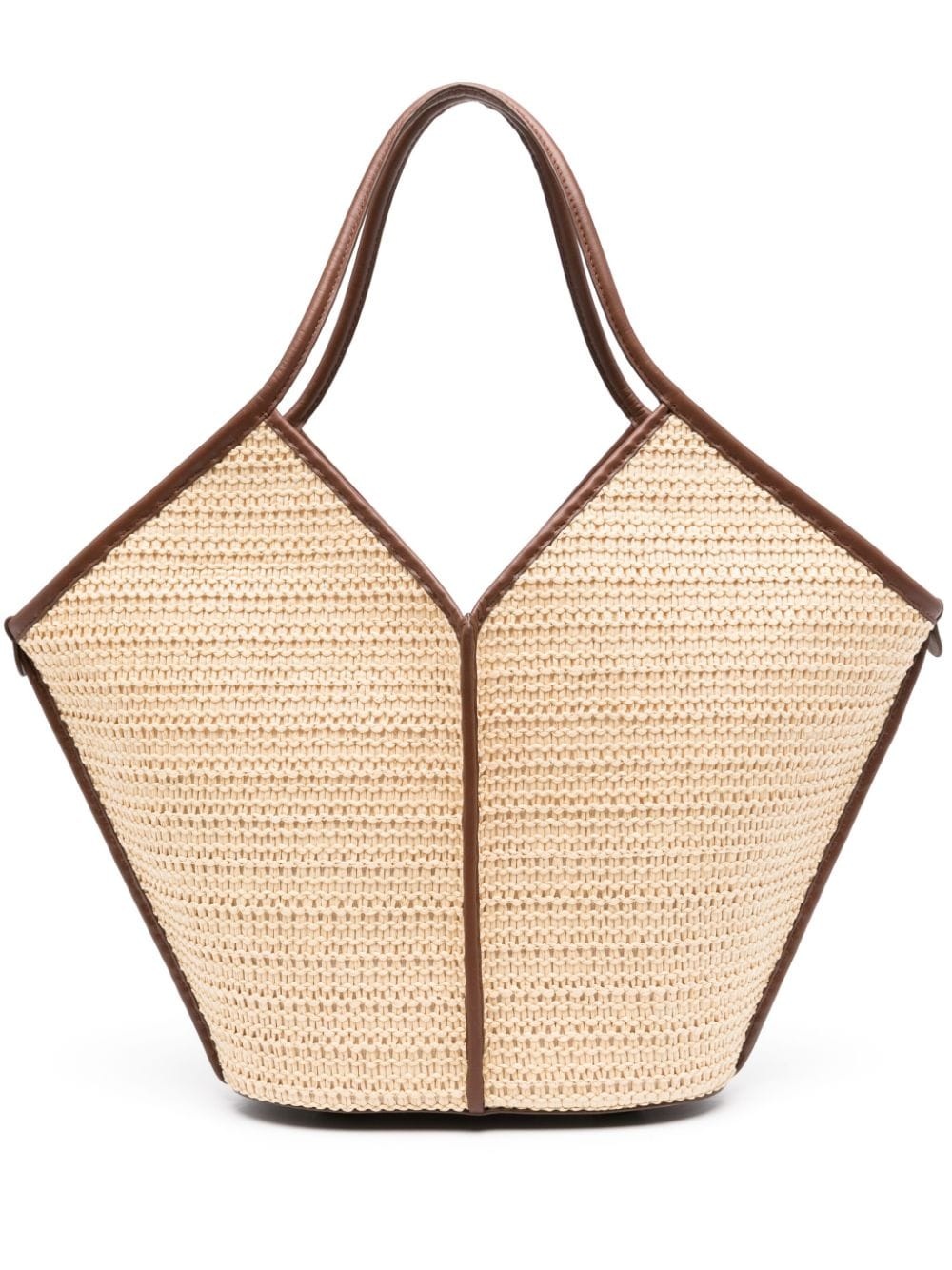 Calella raffia tote bag Highlights - Light beige/chestnut brown - Woven raffia design - Leather trim - Two rolled top handles - Main compartment - Removable pouch - Debossed internal logo - Canvas lining - Tie-top fastening - This piece comes complete with a protective dust bag. Imported Composition Outer: Raffia 100%, Calf Leather 100%