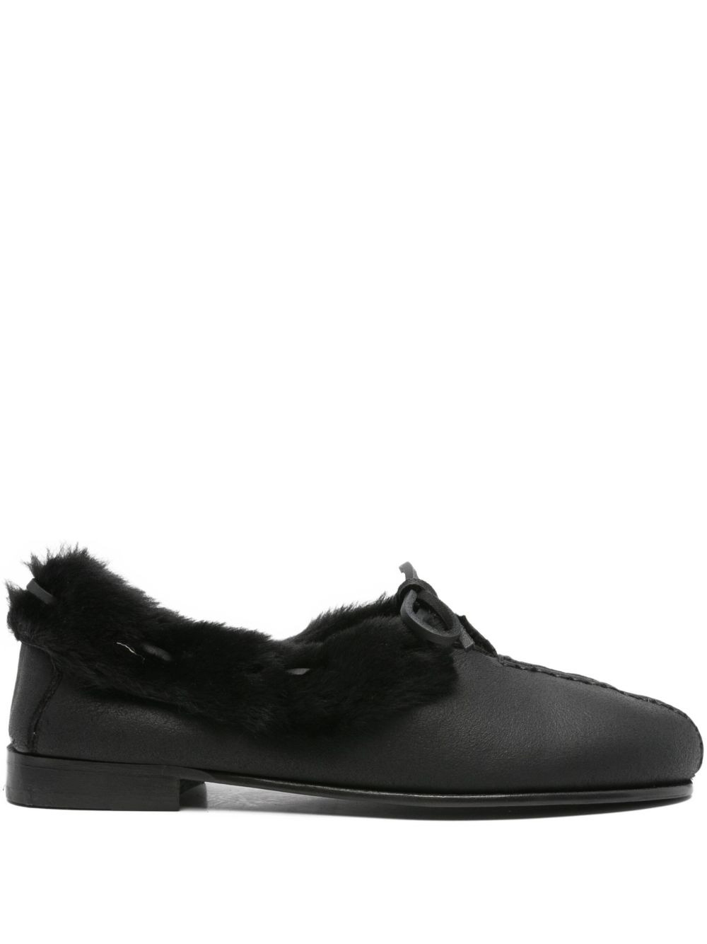 fur-trimmed leather loafers Highlights - Black - Calf leather - Fur trim - Bow detail - Round toe - Flat heel Imported Composition Lining: Calf Leather 100%, Sheep Skin/Shearling 100% Outer: Calf Leather 100% Sole: Calf Leather 100%, Rubber 100%