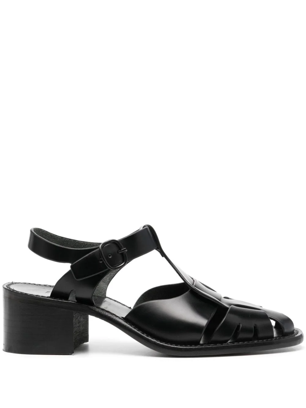 Pesca leather sandals Highlights - Black - Leather - Grained texture - Cut-out detailing - Almond toe - Buckle-fastening ankle strap - Mid block heel Imported Composition Outer: Grained Leather 100% Sole: Grained Leather 100% Lining: Grained Leather 100% SIZE & FIT Measurement CIRCUMFERENCE 11.02 in(28 cm) HEEL 1.96 in(5 cm) HEIGHT 1.37 in(3.5 cm) Sole height 0.39 in(1 cm)