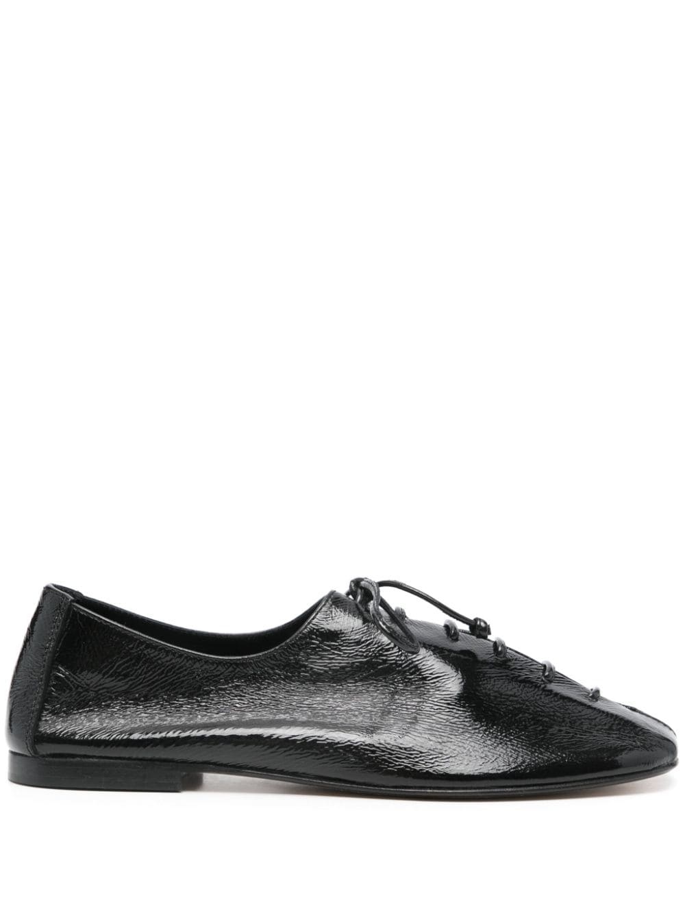 Plegada shoes Highlights - Black - Calf leather - Patent finish - Crinkled finish - Front lace-up fastening - Square toe - Branded leather insole - Flat leather sole Imported Composition Leather 100%