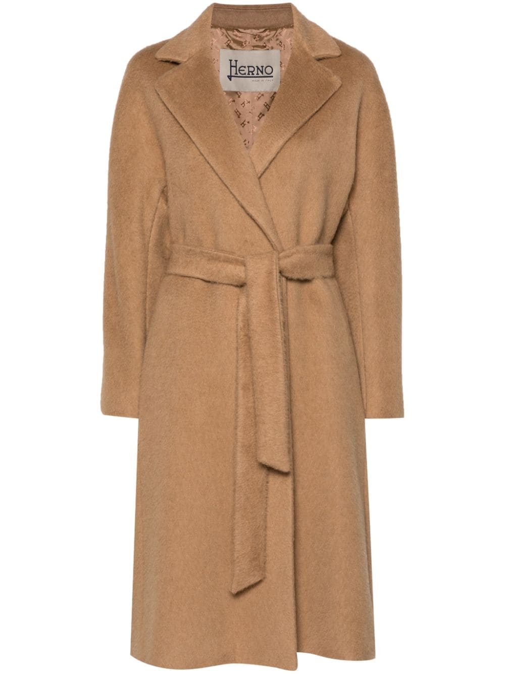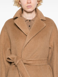 belted coat Highlights - Camel brown - Brushed effect - Belted waist - Notched lapels - Long sleeves - Belt loops - Detachable and adjustable waist tie - Two side inset pockets - Full logo-jacquard lining - Wrap design - Straight hem - Below-knee length Made in Italy Composition Lining: Viscose 100% Outer: Camel Hair 100% SIZE & FIT Model measurements Height 5 ft 9 in(1.75 m) Bust/Chest 34.64 in(88 cm) Hips 36.61 in(93 cm) Waist 26.37 in(67 cm) FittingInformation Designed to be unstructured, offering a loose fit throughout The tie fastening gives an adaptable and personalised fit Made from a midweight non-stretch fabric