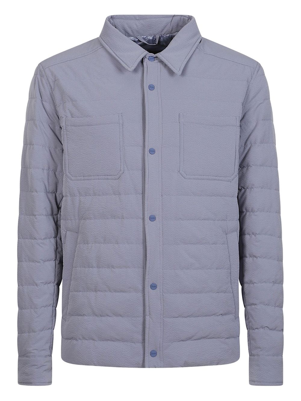 button-up down jacket Highlights - Blue - Front button fastening - Two chest patch pockets - Long sleeves - Buttoned cuffs Made in Italy Composition Outer: Polyester 100% Lining: Polyamide 100%, Goose Down 100%