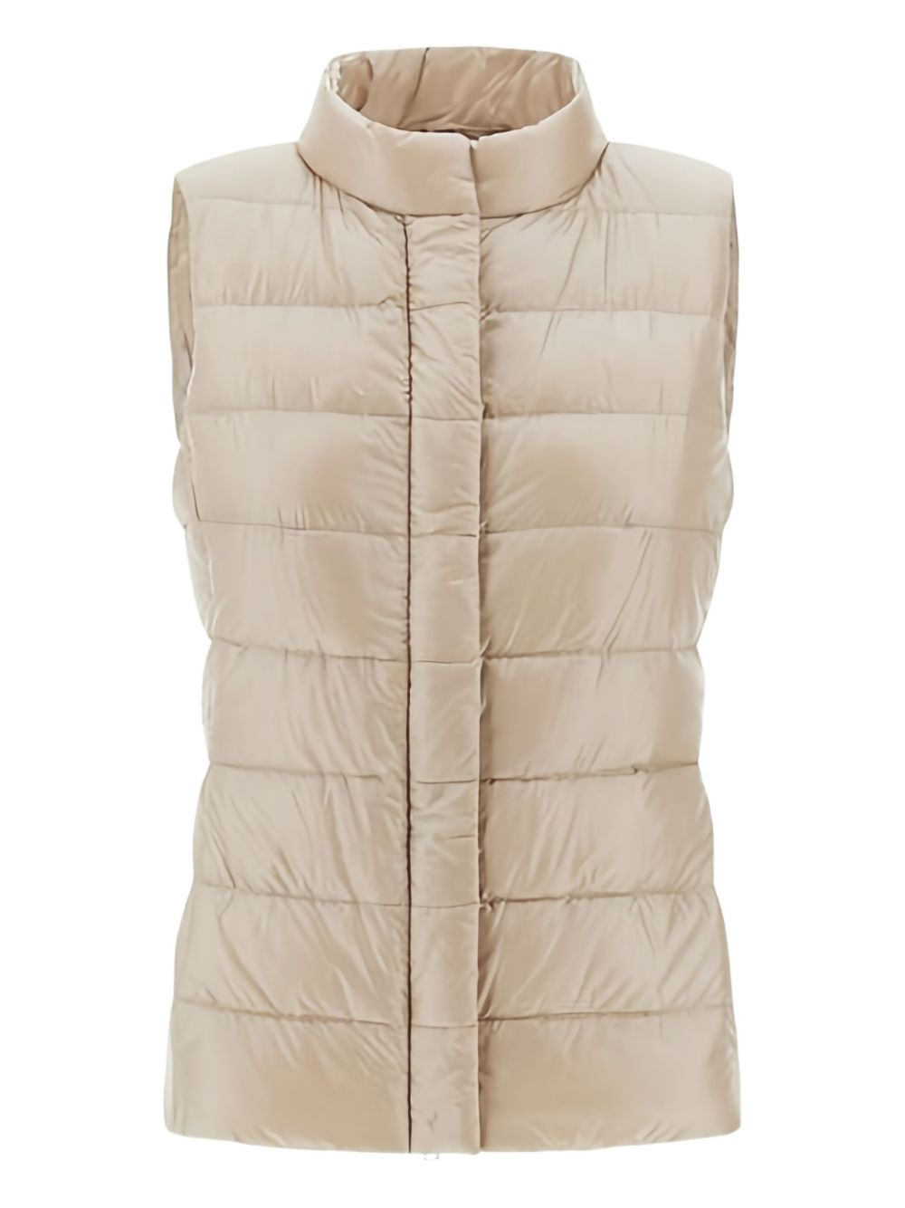 buttoned padded gilet Highlights - Beige - Padded design - High neck - Sleeveless Imported Composition Outer: Polyamide 100% Lining: Polyamide 100%, Feather Down 90%, Feather 10% Washing instructions Read Manufacturer Guidelines
