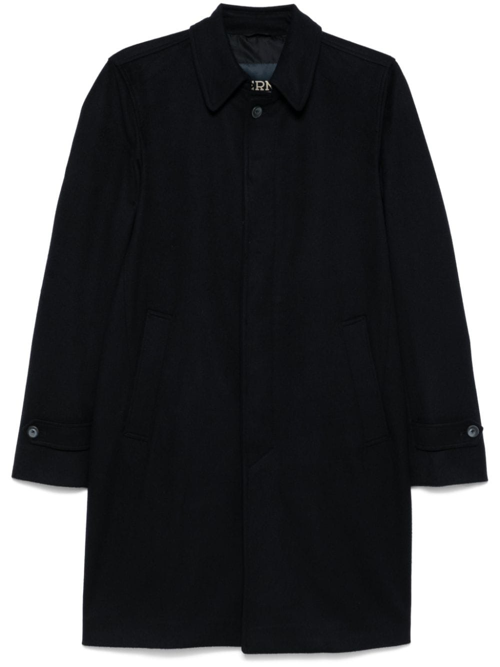 cashmere coat Highlights - Navy blue - Cashmere - Concealed front button fastening - Classic collar - Long sleeves - Buttoned cuffs - Two side welt pockets - Central rear vent - Full lining - Internal pocket - Straight hem Made in Italy Composition Lining: Cupro 100% Outer: Cashmere 100%, Cupro 100% SIZE & FIT Model measurements Height 6 ft 1 in(1.85 m) Bust/Chest 35.82 in(91 cm) Hips 37.79 in(96 cm) Waist 29.13 in(74 cm) FittingInformation Designed to be unstructured, offering a loose fit throughout The vented hem offers movement at the rear Made from a midweight non-stretch fabric