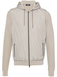 contrast-panel pique jacket Highlights - Light beige - Cotton - Pique weave - Drawstring hood - Long sleeves - Ribbed cuffs and hem - Contrasting panel detail - Two side zip-fastening pockets - Internal logo tag - Straight hem - Front two-way zip fastening Imported Composition Outer: Polyester 100%, Cotton 100% Lining: Polyester 100% Washing instructions Hand Wash