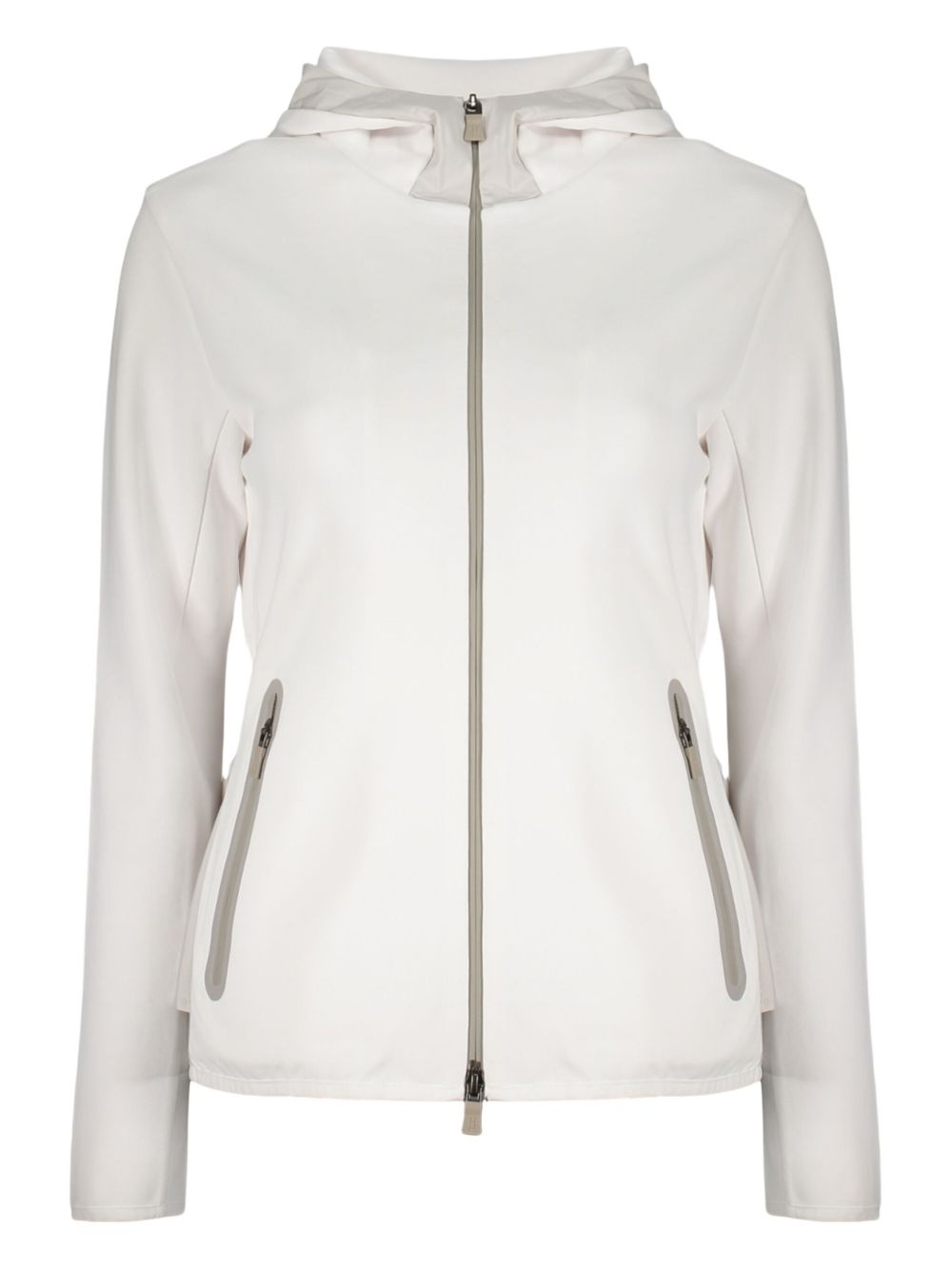 cotton-blend jacket Highlights - White - Front two-way zip fastening - Rear elasticated waistband - Two side zip-fastening pockets - Peplum hem Imported Composition Polyester 100%, Polyamide 55%, Cotton 45%