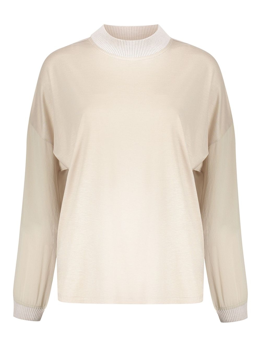 crew-neck long-sleeve top Highlights - Cream beige - Ribbed collar - Dropped shoulders - Elasticated cuffs - Relaxed fit - Straight hem Imported Composition Lyocell 100%, Polyester 100%, Virgin Wool 100%, Cotton 50%, Viscose 50%