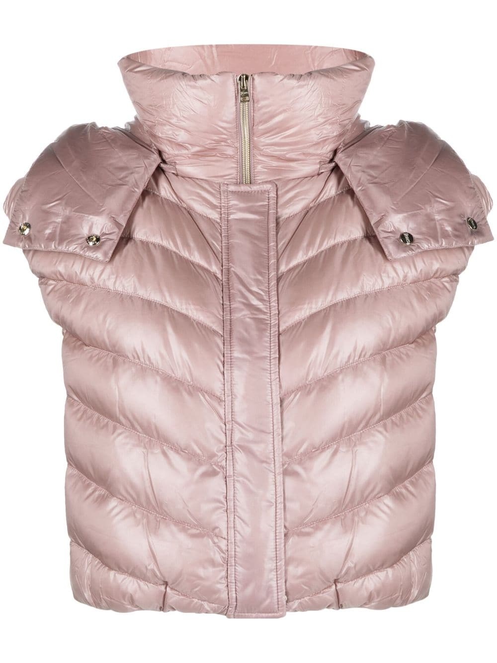 cropped down gilet HERNO lends this gilet a sporty appeal, drawing inspiration from the bomber jacket to design this silhouette. The lilac-hued piece is insulated with feather down for extra warmth. Highlights - Lilac - Down-feather filling - Padded design - Glossy finish - Detachable hood - Concealed front zip fastening - Short sleeves - Two side slit pockets - Cropped Imported Composition Lining: Polyamide 100%, Down 90%, Feather 10% Outer: Polyamide 100% SIZE & FIT Model measurements Height 5 ft 10 in(1.78 m) Bust/Chest 31.49 in(80 cm) Hips 35.03 in(89 cm) Waist 23.62 in(60 cm) FittingInformation Designed for a relaxed fit, this piece allows for comfort and movement when worn Made from a padded non-stretch fabric, giving it no natural elasticity This piece fits true to size – take your usual size