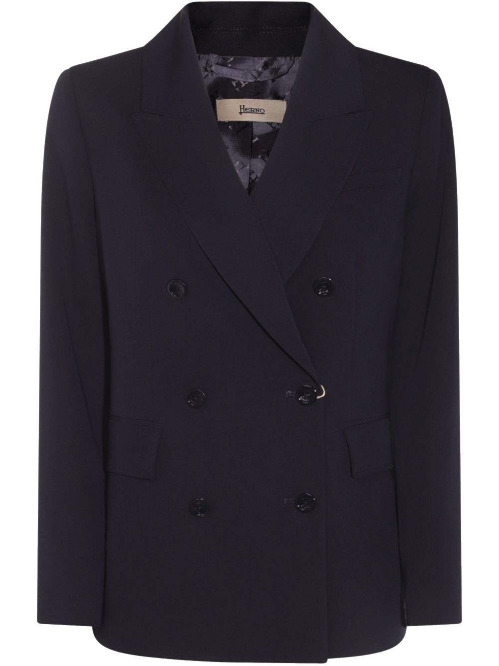double-breasted blazer Highlights - Midnight blue - Double-breasted button fastening - Jetted chest pocket - Wide notch lapels - Two side flap pockets Made in Italy Composition Lining: Viscose 100% Outer: Polyester 72%, Viscose 23%, Elastane 5%