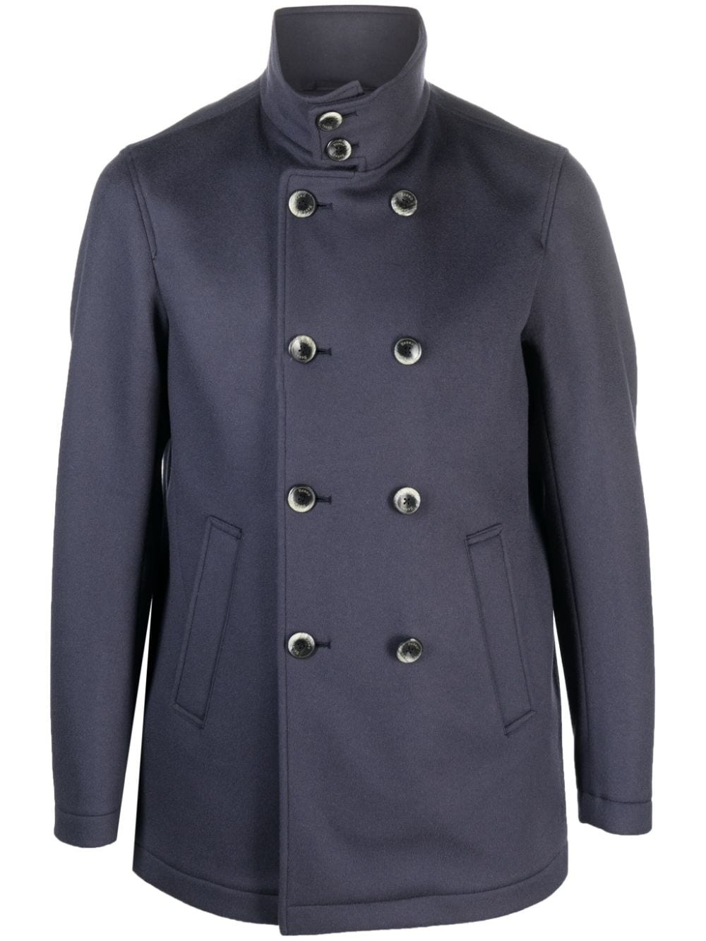 double-breasted wool-cashmere coat Highlights - Blue-grey - Wool-cashmere blend - High neck - Double-breasted button fastening - Long sleeves - Straight hem - Two side welt pockets Made in Italy Composition Outer: Wool 90%, Cashmere 10% Lining: Polyester 100% SIZE & FIT Model measurements Height 6 ft 1 in(1.85 m) Bust/Chest 38.58 in(98 cm) Hips 37 in(94 cm) Waist 30.31 in(77 cm) FittingInformation Designed to be unstructured, offering a loose fit throughout Made from a midweight non-stretch fabric This piece fits true to size – take your usual size Washing instructions Dry Clean Only