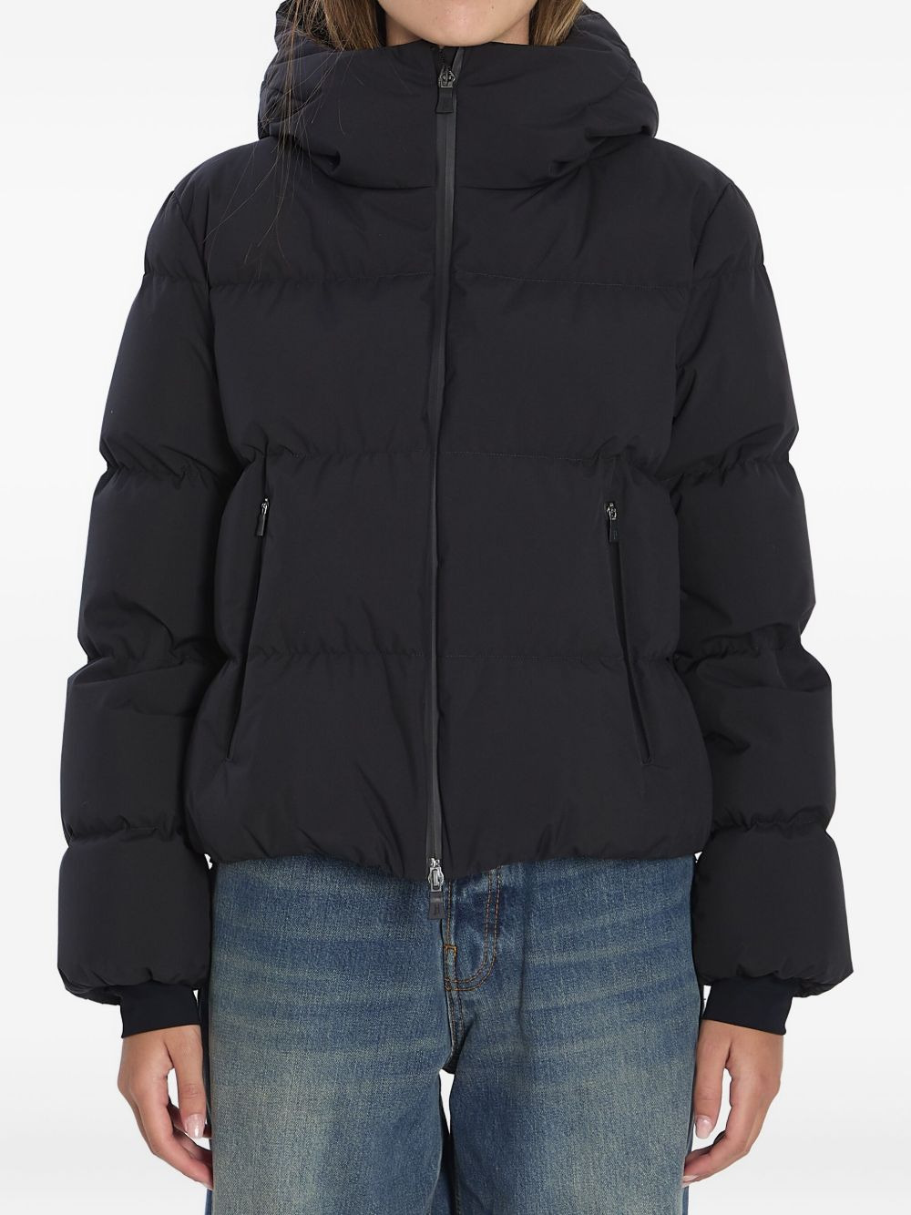 double-layer hooded down jacket Highlights - Black - Zip closure - Drawstring hem - Side zip pockets - Hooded Imported Composition Outer: Polyester 100% Lining: Polyamide 100% Washing instructions Read Manufacturer Guidelines