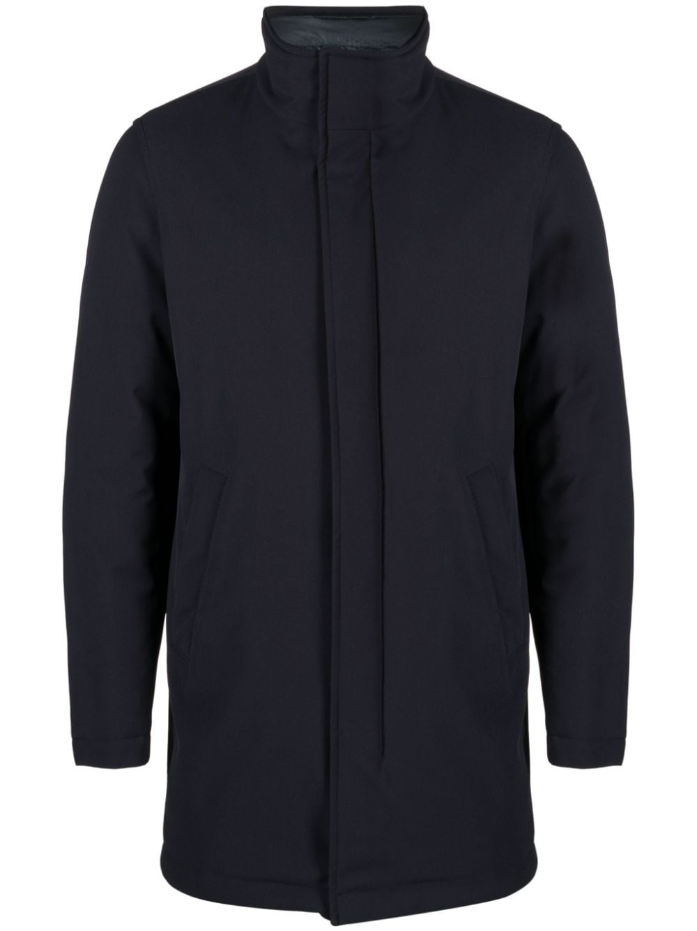 funnel-neck padded coat Highlights - Navy blue - Feather down - Twill weave - Double layer - High neck - Concealed front press-stud fastening - Concealed front two-way zip fastening - Internal zip-fastening - Long sleeves - Two press-stud fastening side pockets - Internal slip pocket - Internal zip-fastening pocket - Straight hem - Full lining Made in Italy Composition Outer: Polyester 100%, Polyurethane 100% Lining: Polyester 100%, Feather Down 100%, Polyamide 100% SIZE & FIT Model measurements Height 6 ft 1 in(1.86 m) Bust/Chest 38.18 in(97 cm) Hips 38.18 in(97 cm) Waist 30.7 in(78 cm) FittingInformation Designed for a slim fit, offering a comfortable fit that sits just away from the body The detachable panel offers the preference for a different fit Made from a padded non-stretch fabric, giving it no natural elasticity This piece fits true to size – take your usual size Washing instructions Dry Clean Only