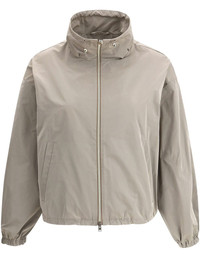 drawstring-collar jacket Highlights - Grey - Front two-way zip fastening - Two side welt pockets - Elasticated cuffs Made in Italy Composition Polyester 100% Washing instructions Read Manufacturer Guidelines