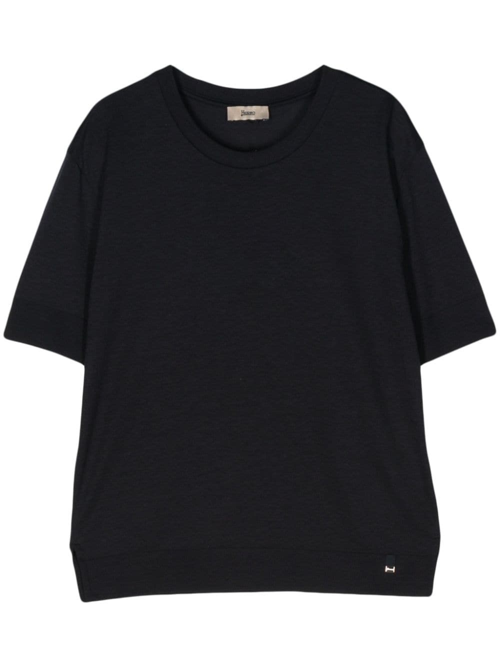 fine-knit short-sleeved jumper Highlights - Navy blue - Lyocell-cotton blend - Fine knit - Crew neck - Short sleeves - Ribbed cuffs and hem - Short side slits - Gold-tone logo plaque to the rear - Straight hem Imported Composition Lyocell 67%, Cotton 33%