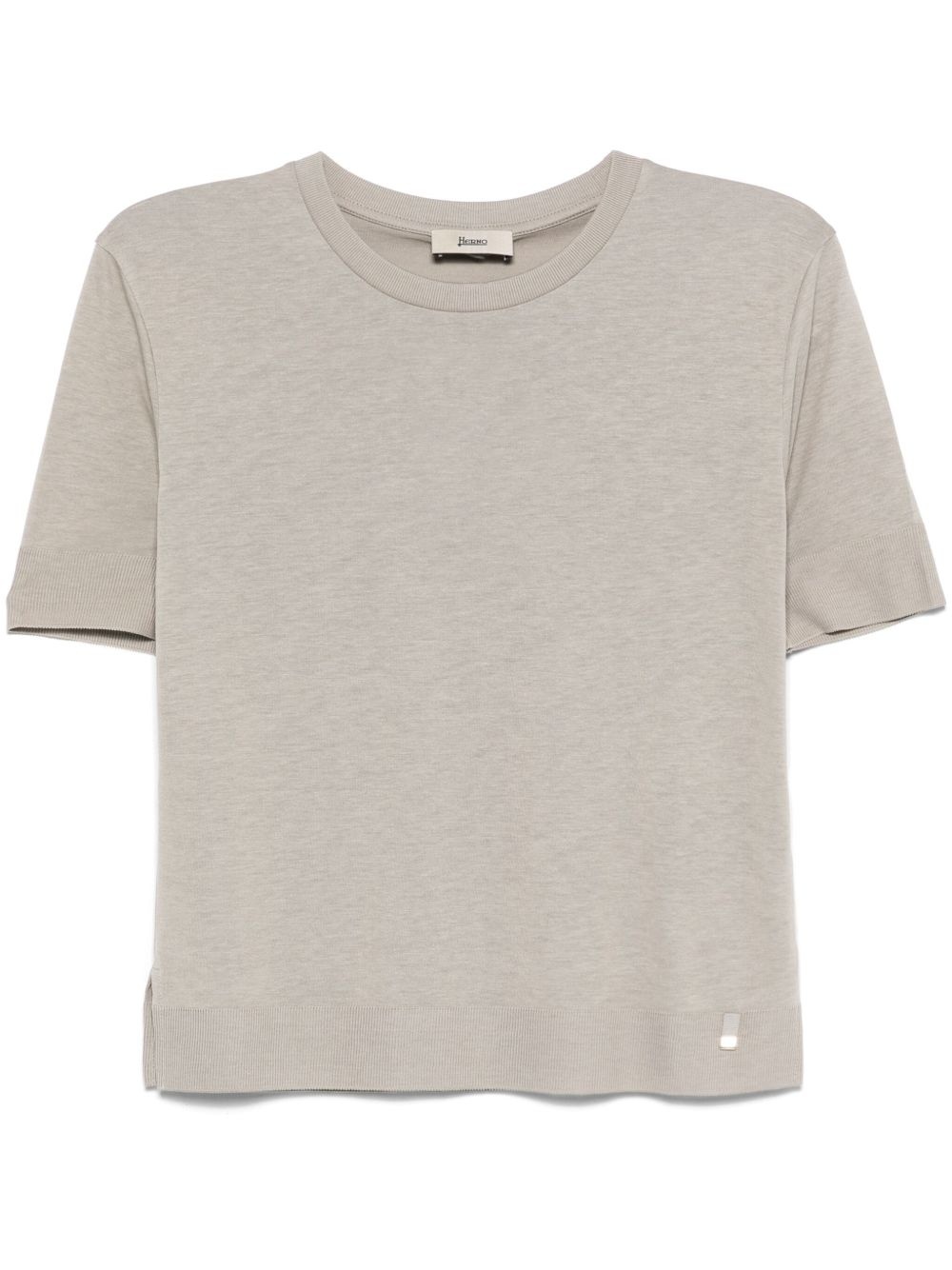 fine-knit T-shirt Highlights - Taupe grey - Crew neck - Ribbed cuffs and hem - Short sleeves Imported Composition Lyocell 67%, Cotton 33% SIZE & FIT Model measurements Height 5 ft 10 in(1.77 m) Bust/Chest 31.88 in(81 cm) Hips 36.22 in(92 cm) Waist 24.01 in(61 cm) FittingInformation Designed for a relaxed fit, this piece allows for comfort and movement when worn Made with a lightweight knit, this piece offers some stretch