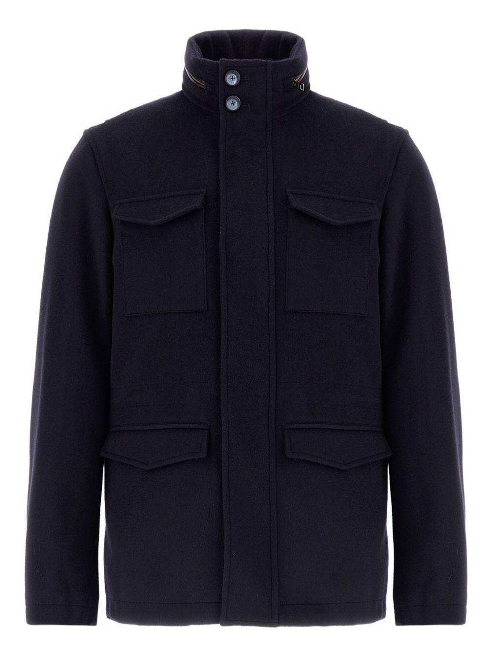 flap-pocket jacket Highlights - Dark blue - High collar - Button fastening - Flap pockets - Long sleeves Made in Italy Composition Fabric 100% Washing instructions Read Manufacturer Guidelines