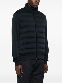 funnel-neck padded jacket Highlights - Midnight blue - Feather down - Padded design - Quilted - Panelled design - Perforated design - Funnel neck - Front zip fastening - Long sleeves - Elasticated cuffs - Two side zip-fastening pockets - Straight hem Made in Italy Composition Lining: Down 80%, Feather 20% Polyamide 100% SIZE & FIT Model measurements Height 6 ft 0 in(1.84 m) Bust/Chest 35.82 in(91 cm) Hips 37 in(94 cm) Waist 28.34 in(72 cm) FittingInformation Designed for a regular fit, allowing for a comfortably loose fit throughout the body The ribbed hem offers a close, comfortable fit Made from a midweight fabric This piece fits true to size – take your usual size Washing instructions Machine Wash
