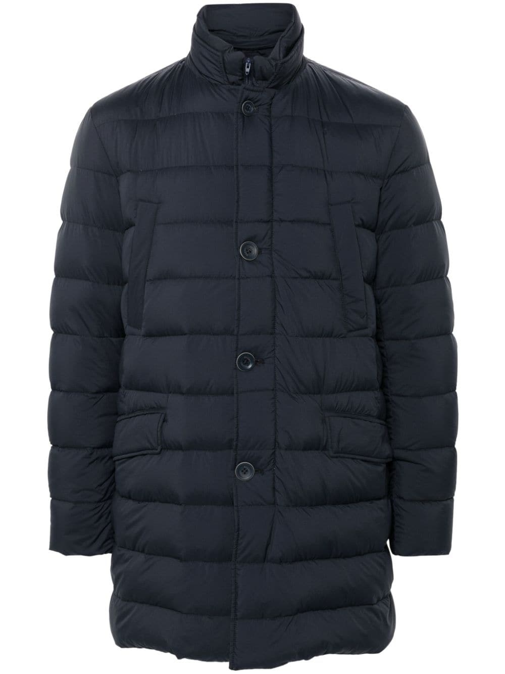 Goose down coat Highlights - Midnight blue - Goose down - Padded design - Two side slash pockets - Front flap pockets - Front button and zip fastening Imported Composition Lining: Polyamide 100%, Goose Down 90%, Goose Feather 10% Outer: Polyamide 100%, Polyester 100% SIZE & FIT Model measurements Height 6 ft 1 in(1.85 m) Bust/Chest 35.82 in(91 cm) Hips 37.79 in(96 cm) Waist 29.13 in(74 cm) FittingInformation Designed for a slim fit, offering a comfortable fit that sits just away from the body The detachable panel offers the preference for a different fit Made from a padded non-stretch fabric, giving it no natural elasticity This piece fits true to size – take your usual size