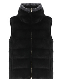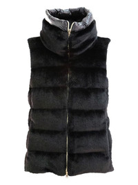 Herno Sweaters Black Highlights - - black herno faux fur quilted vest for woman - high neck - sleeveless - two side slit pockets - front zip fastening100% polyester lining: 100% polyamide padding: 80% goose down 20% goose feathers Made in Italy Composition Polyester 100% Washing instructions Read Manufacturer Guidelines
