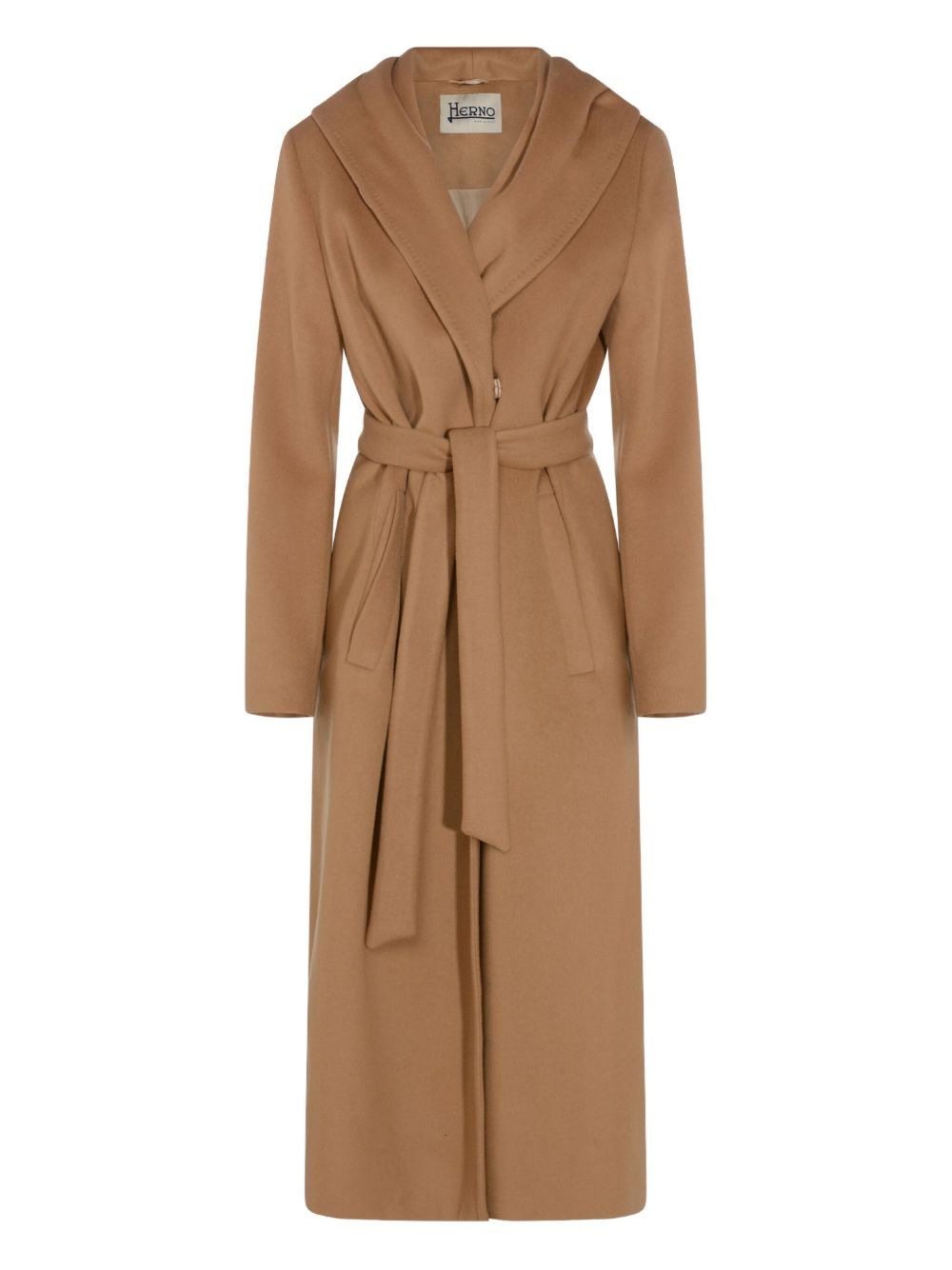 hooded belted coat Highlights - Brown - Hood - Belt - Front pockets - Long sleeves Made in Italy Composition Wool 75%, Polyamide 25% Washing instructions Read Manufacturer Guidelines