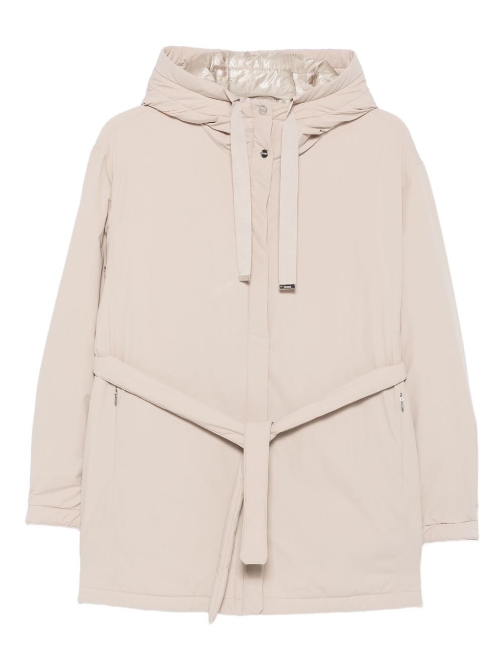 hooded belted jacket Highlights - Beige - Hooded neckline - Drawstring hood - Belted waist - Snap button fastening - Long sleeves Imported Composition Outer: Polyurethane 100%, Polyamide 86%, Cotton 55%, Polyester 45%, Elastane 14% Lining: Polyamide 100% SIZE & FIT Model measurements Height 5 ft 10 in(1.78 m) Bust/Chest 33.46 in(85 cm) Hips 36.22 in(92 cm) Waist 23.22 in(59 cm) Washing instructions Dry Clean Only