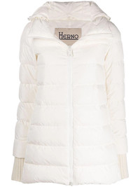 hooded feather-down padded coat Pioneering sleek outerwear, Herno offers this coat in its latest collection. Insulated with down, this iteration is presented in a tonal white design, tapping into a minimal style. Highlights - White - Feather down - Padded design - Padded panels - Classic hood - Front zip fastening - Long sleeves - Ribbed cuffs - Straight hem Imported Composition Lining: Feather Down 100%, Polyamide 100% Outer: Polyamide 100% SIZE & FIT Model measurements Height 5 ft 10 in(1.78 m) Bust/Chest 33.07 in(84 cm) Hips 36.61 in(93 cm) Waist 24.8 in(63 cm) FittingInformation This piece fits true to size. We recommend you get your regular size Cut for a loose fit Made with a mid-weight non-stretch fabric Washing instructions Dry Clean Only