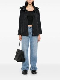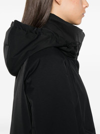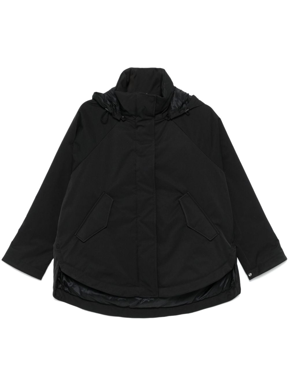 hooded jacket Highlights - Black - Shell - Padded design - Front two-way zip fastening - Detachable drawstring hood - Concealed front press-stud fastening - Stand-up collar - Long raglan sleeves - Two side flap pockets - Rear keeper loop - Internal patch pocket - Full lining - Straight hem Imported Composition Outer: Viscose 100%, Polyester 100%, Polyamide 75%, Spandex/Elastane 25% Lining: Polyamide 100%, Polyester 100% SIZE & FIT Model measurements Height 5 ft 10 in(1.78 m) Bust/Chest 33.85 in(86 cm) Hips 36.61 in(93 cm) Waist 26.77 in(68 cm) FittingInformation Designed to be unstructured, offering a loose fit throughout Made from a padded non-stretch fabric, giving it no natural elasticity