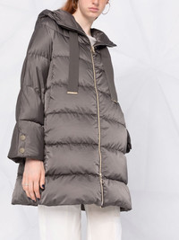 hooded padded coat Designed for effortless cold-weather styling, this Herno coat features a feather-down interior. A protective high-neck design and a drawstring hood finish off this design, ensuring supreme comfort in colder climes. Imported Composition Polyester 100% Lining: Polyamide 100%, Feather Down 100% SIZE & FIT Model measurements Height 5 ft 10 in(1.78 m) Bust/Chest 31.88 in(81 cm) Hips 34.64 in(88 cm) Waist 24.01 in(61 cm) FittingInformation This piece fits true to size. We recommend you get your regular size Cut for a loose fit Made with a mid-weight non-stretch fabric Washing instructions Dry Clean Only